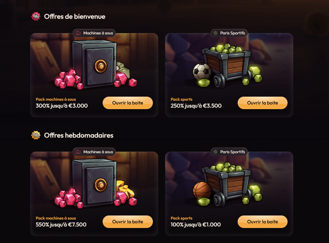 En plus de ce bonus casino, Mad Casino offre également une offre sportive de bienvenue pour les passionnés de paris, répartie elle aussi sur trois dépôts avec un cumul possible jusqu’à 3 500 €. Ces bonus sont soumis à un wagering de 15x, avec un dépôt minimum de 20 €.