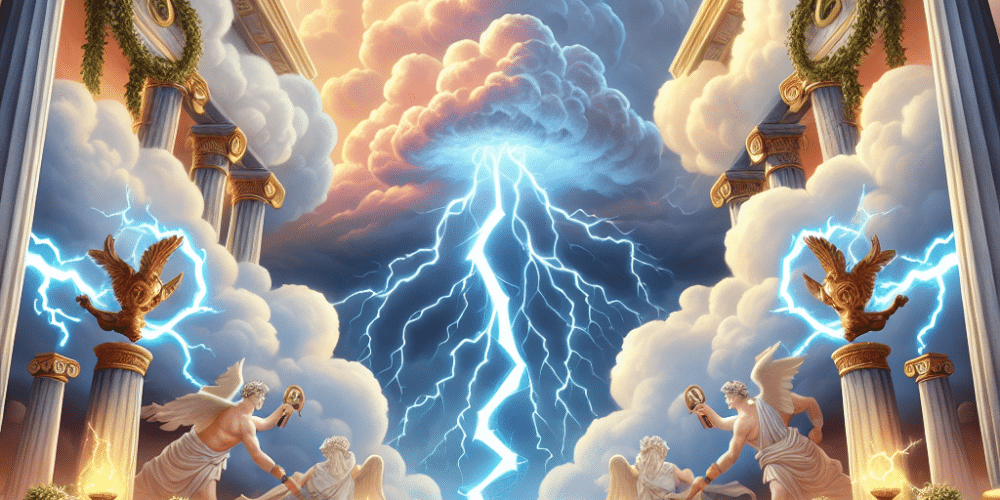 Le décor du jeu est inspiré de l’Antiquité grecque, avec des temples de marbre et un ciel orageux où les éclairs dorés jaillissent des nuages. Zeus, en figure centrale, impose sa présence sur les rouleaux, renforçant l’atmosphère divine du jeu. Les symboles incluent des harpes, des casques et des orbes célestes, tous ornés de riches détails métalliques qui intensifient le sentiment de grandeur épique.